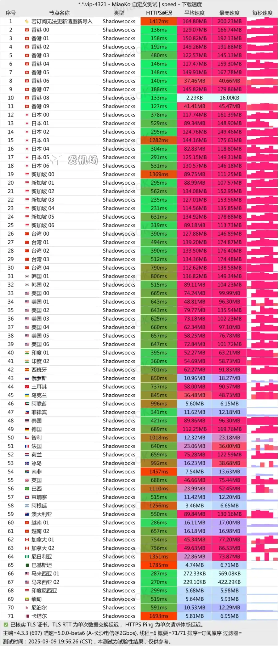早先似乎存在订阅无法导入的问题,测速时目测已修复。常用地区节点表现不错。